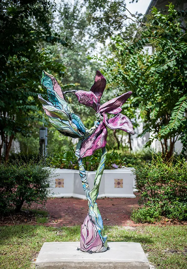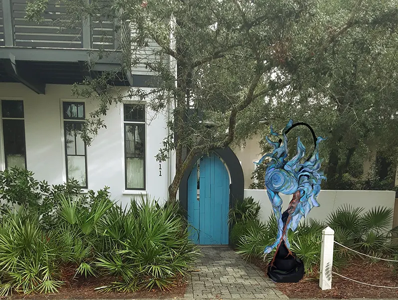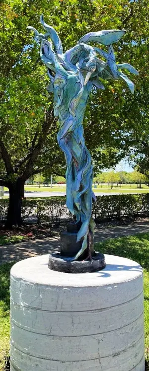 <blockquote>My subject matter has remained rooted in themes of nature, feminine beauty, and animals. Sculptures are created with the intent of bringing a figure to life that is both whimsical and elegant simultaneously. A successful piece exudes something of a life force in an apparent though ephemeral personality. The paradox in the work that the upcycled material is commonly disposed of in ways that affect the very creatures I am creating is important to me. One artistic goal is for my work to speak, draw attention to the use of recycled materials (that are intentionally not obvious): That all works made from recycled material do not have to look like the recycled parts they were crafted from in the final work. I am saddened by what is happening to our wildlife and environment and create my work in an intuitive manner of conversation between upcycled/recycled materials mixed with compounded cement, steel, and a strong affinity: appreciation for all things in nature.</blockquote>