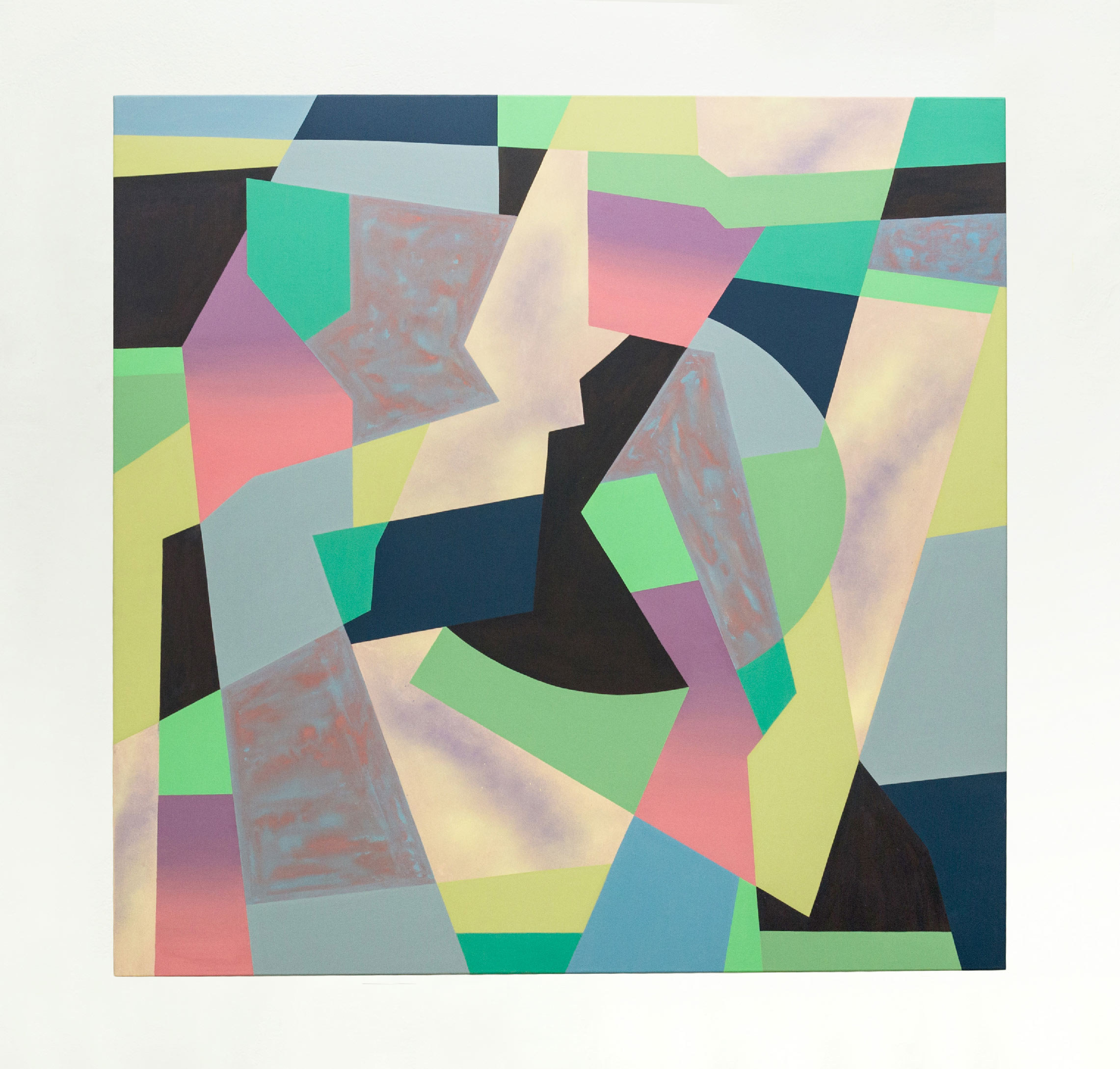 The disruptive in composition, tension and color are the subject of study. The multiple ways of representing geometry is predominant in his work. He is interested in experimenting with different pictorial systems, which generate crosses where Riffel questions a new spatiality.