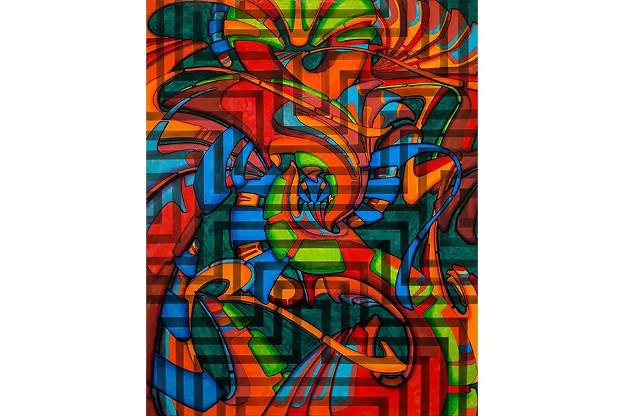 The use of patterns, visual illusions, and op-art style illusions give the artworks motion and depth, and the use of colors give the artworks an extremely vivid subject to explore. The intention behind this approach to paintings is to create artworks that give the viewer a sense of wonderment, playing with the visual planes of sight, bringing both the subject matter and the pattern or illusion on a constant harmonious play with each other.
