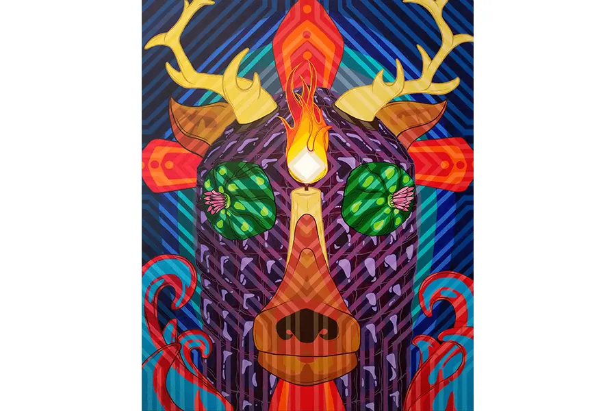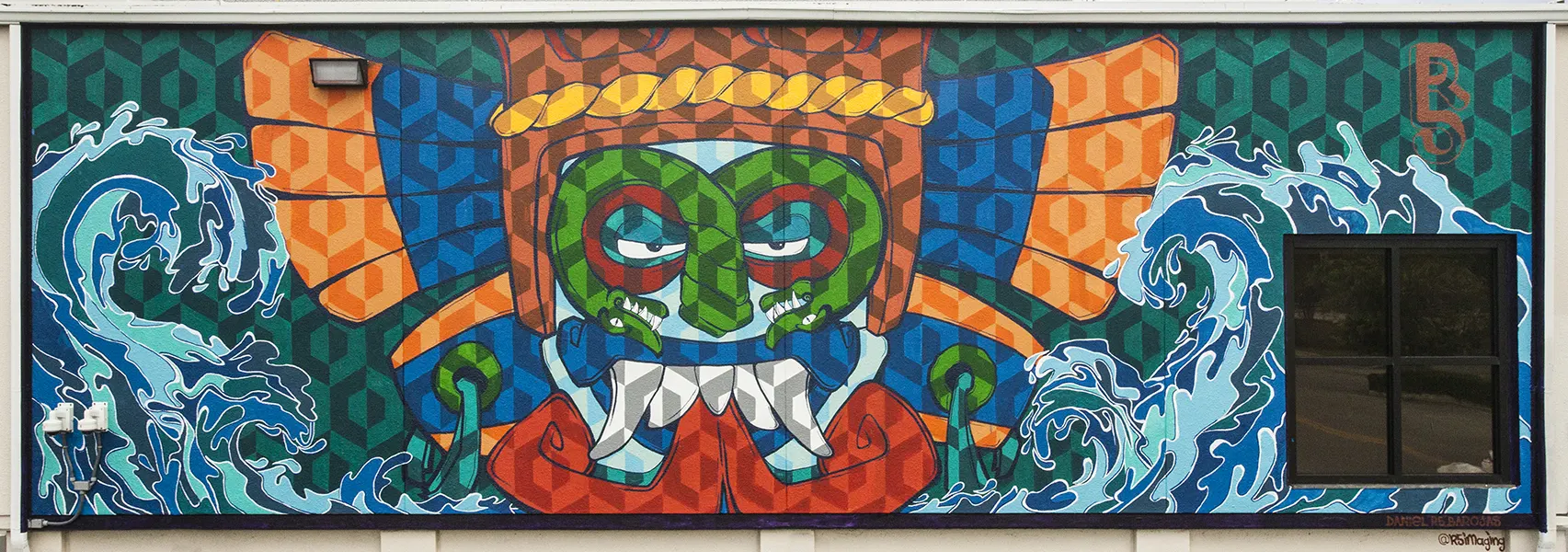The creative works from the mind of Daniel Barojas seek to cultivate a visual world that is a brew of elements from traditional cultures, ancient mythologies and popular fables mixed with urban influences. Seeking a balance between the subject, and shapes, patterns or illusions, balanced by a heavy dose of color, is Daniel’s method to create a deeper relationship with both the process of creation and the outcome of artistic input.