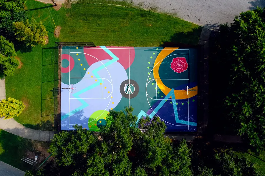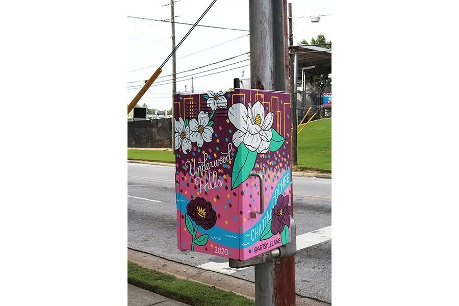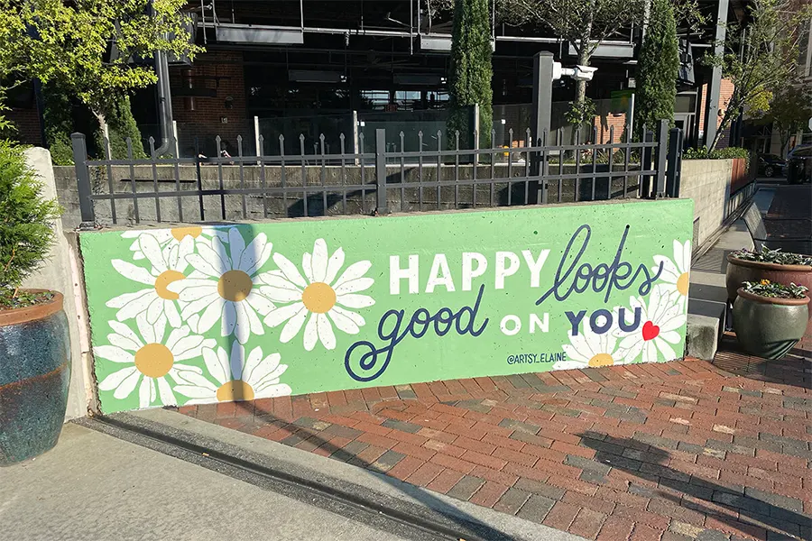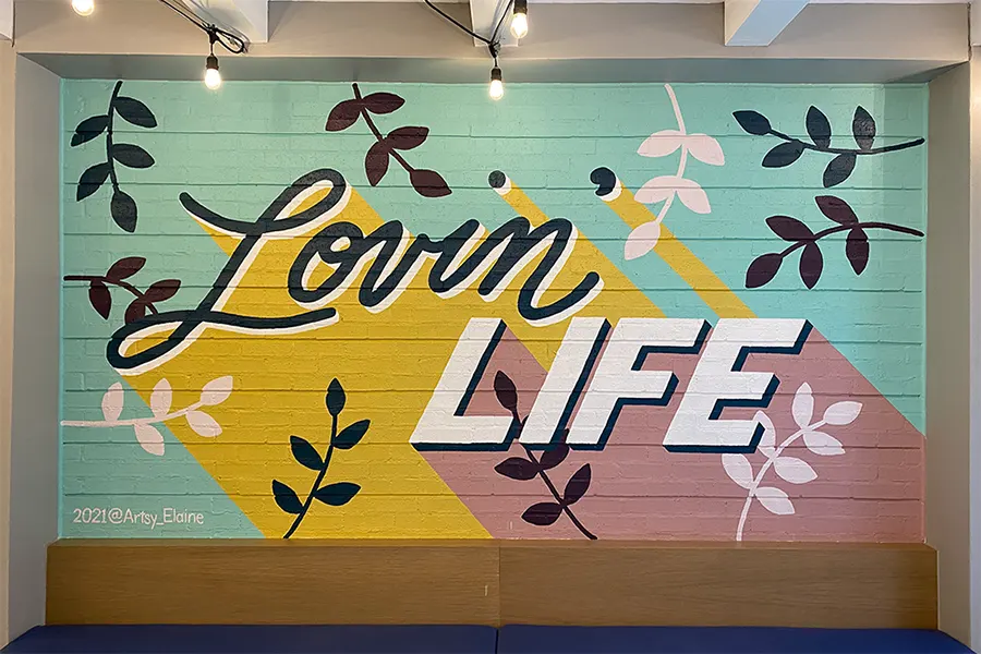 Elaine Stephenson is an artist, designer & muralist creating bright & colorful art with positive messages to uplift and inspire. She draws from her personal experience with anxiety and depression as a means to create art that focuses on the beauty of life and encourages others. An Atlanta native, she studied graphic design at the University of Georgia, which ignited her love for typography which is a big focus in her work. After a 10 year design career, she now combines both her design skills and an artistic voice to create branding for female-led businesses and art that enhances spaces and starts conversations. Elaine is very involved in public art and has several permanent artworks around Atlanta, including a 4,700 sq. foot bridge mural in the West End.