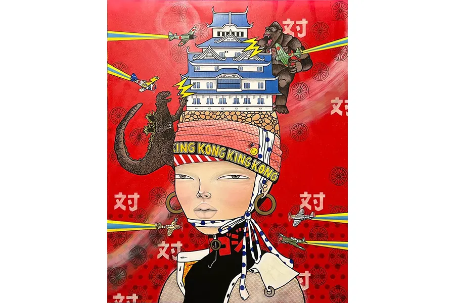 Her work explores identity, individuality, gender issues, societal gaze, and social justice. She utilizes a contrived scenario, characterization of her own likeness, intentional use of semiotics, and the psychology of color to build her vernacular.
