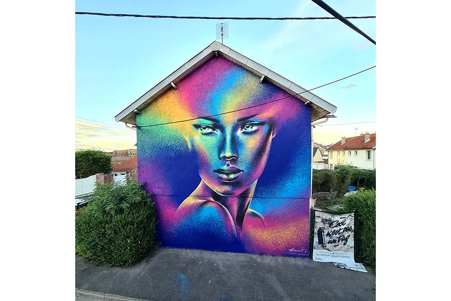 After training at the Ecole Boulle for five years, Emy known as the artist Emyart's, began her career in drawing as a Jewelry Designer then changed paths and imprinted that of Street Art which turned out to be her true passion. Attracted by the work of the large portrait and in particular that of the gaze, she develops different colored universes inspired by dreams and feminine beauty.