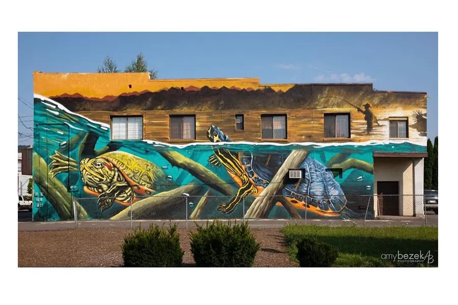 Evan studied at the University of The Arts of Philadelphia concentrating in sculpture and illustration. Over the years he combined his love for the two and has built a body of public art in the form of murals that can be seen from coast to coast as well as internationally. What sparked his love for murals and public art was a bit less academic, it came from years of painting graffiti when he was younger. He learned very valuable skills and techniques from graffiti, like how to view a space and quickly develop a dynamic composition while still taking in consideration the environment and surroundings. Now he takes pride using those talents to help enrich communities and their landscapes.