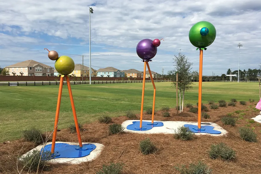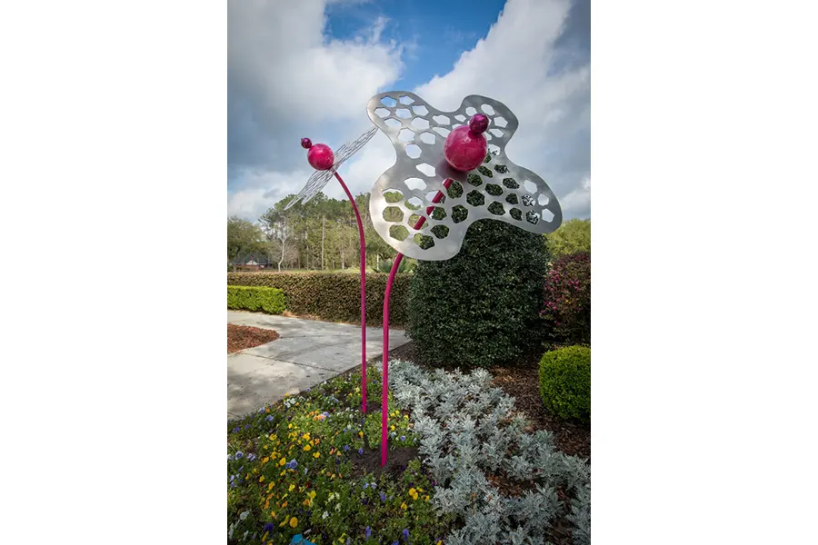 I also have over 10 years of experience with public art, including commissions from the United States Army Corps of Engineers (River and Light), the Cade Museum for Creativity and Invention (Learn to See), and Orange County (Aviary), Orlando, Florida. My work has been included in exhibits throughout the United States and in Europe such as the National Outdoor Sculpture Exhibit in Charleston, SC, and In Context: The National Sculpture Exhibition in Dublin, Ireland. I have been creating public art that represents diverse communities for over ten years and I have all the qualifications and experience (and insurance) to develop, permit, fabricate and install public art projects safely, on budget, and on time. My LLC is a registered Woman-Owned (WBE) Certified Business enterprise in the state of Florida. My approach to public art projects is not all that unlike how an architect/contractor might work, moving from concept development to forms (hand drawings, computer models, etc) to fabrication plans, engineering, fabrication, finishes, and installation. My experience in creating fabrication drawings and having engineered drawings allows me to work directly with contractors, architects, and permitting officials to ensure that the installation of the work is successful.” – Jenn Garrett