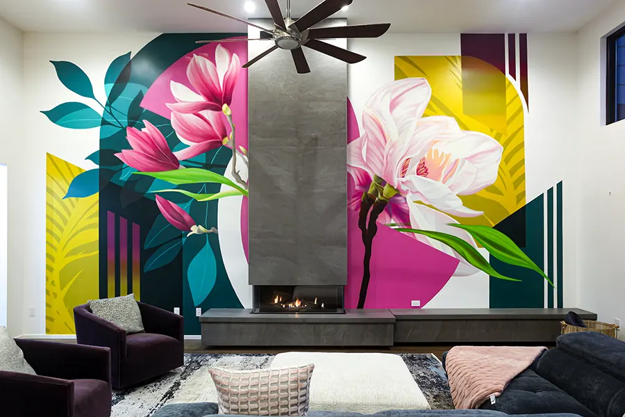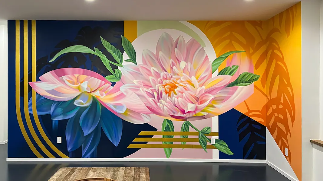 She currently creates both large scale murals on walls, or paintings in the studio. She has work in cities like Charlotte, Miami, Chicago, Berkeley and Naples, Italy. She has painted murals for clients like Starbucks and Credit Karma. Her work has sparked the interest of many, and has earned her numerous commissions for private collectors and public art projects.