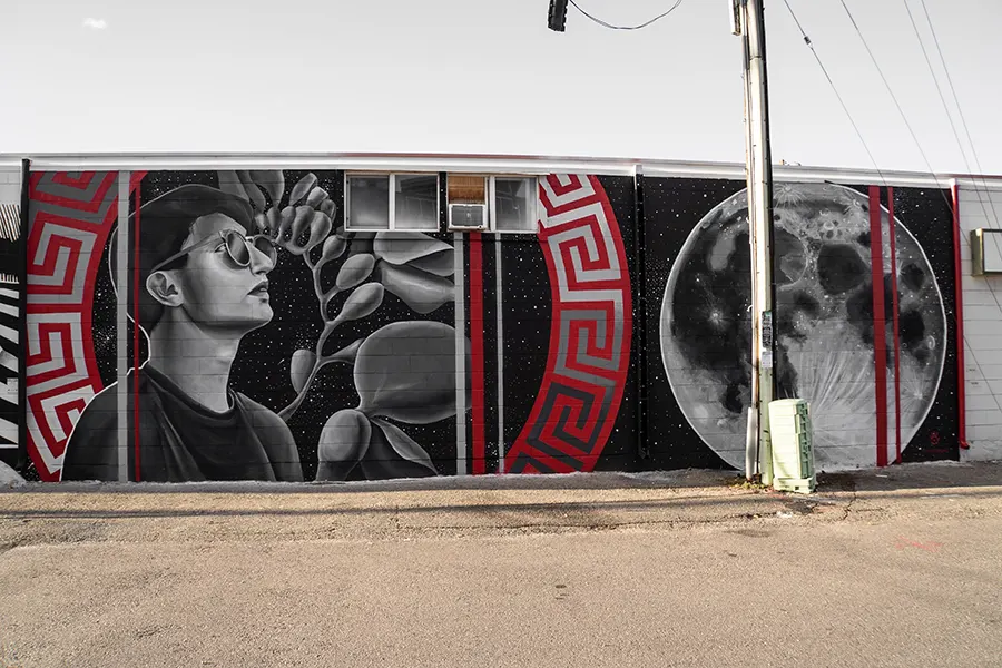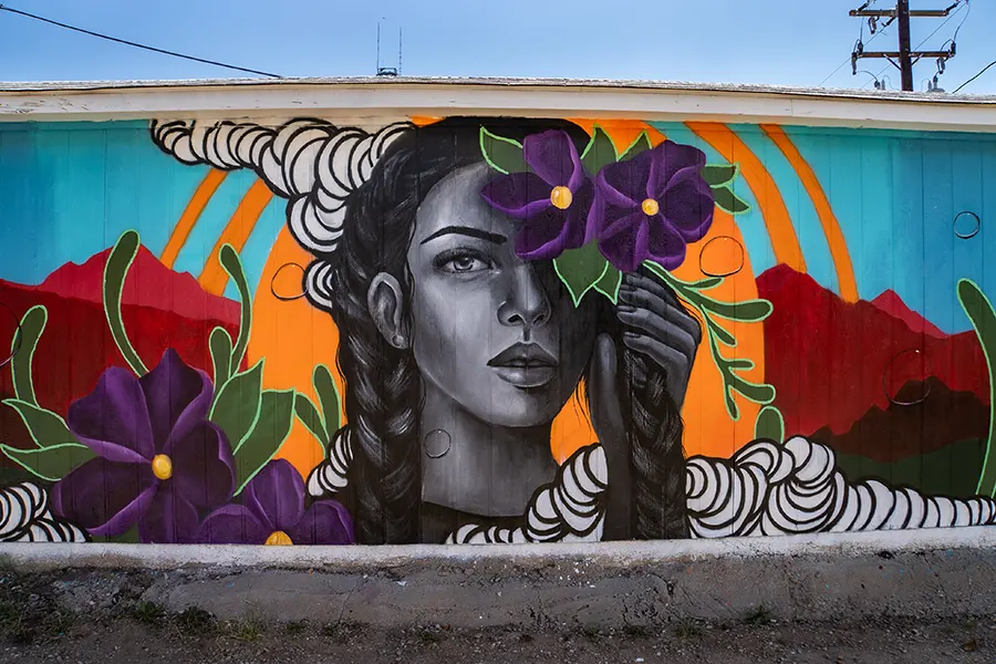 Koco Collab is the coalescence of artists Aiko Szymczak and Corinne Trujillo. In our practice, we depict ethnically diverse subjects with cross-cultural imagery and themes of nature. By juxtaposing stoic grayscale figures with vibrant backgrounds, we explore the relationship between the inner workings of the mind and the external world. We seek to unravel the complexity of our history by taking various elements of our heritages and weaving them back into new stories. By doing this, we create a platform for the healing process. Within our work, we delve into conversations and projects surrounding mental health, land acknowledgement, introspection and highlighting underrepresented people in the community. We aim to create safe, public spaces in which the viewer can reflect and feel seen.