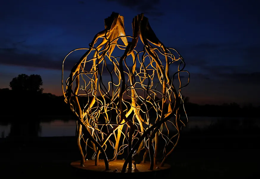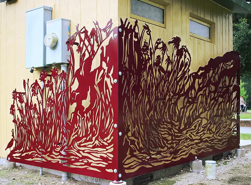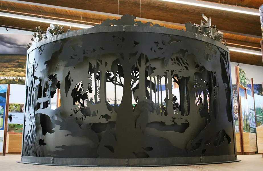 I now run my own metal studio in Gainesville, and I specialize in large-scale sculpture and custom metalwork that integrates forged techniques. I believe public art has the power to surprise and delight people, and through that engagement, there is an opportunity for meaningful conversation. Curiosity exists in us all, and public art holds the unique ability to be seen by many different people, in many different places. Our days deserve to be filled with color and wonder, and I hope my work can provide that escape, as well as educational inspiration for the subjects it explores.