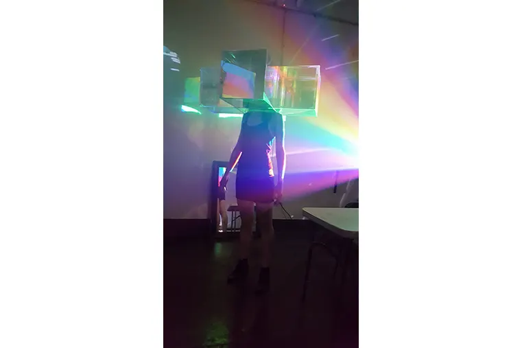 Jay Rosen aka Mirror Vision explores the possibilities of perception and visual phenomena, by harnessing the immaterial, transient nature of light. Mirror Vision’s mission is to heighten our awareness to the natural world by causing us to experientially stare directly into the invisible operations of optics at work. Jay’s artistic medium has gradually evolved from traditional painting and collage to light installation art and wearable glass fashion sculptures. Jay is now focused on bridging the gap between his optical phenomenal sensory experiments with the digital metaverse – exploring use of holograms, machine learning and Augmented/Virtual Reality technologies to bring impossible designs to life.