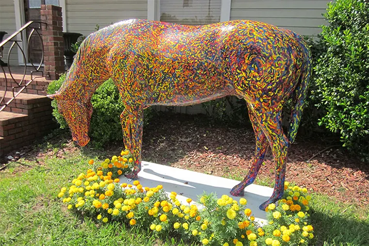 In 2010, The City of Ocala commissioned Jay to design and paint an equestrian public statue as part of “Horse Fever” art program. “Iris” is a life-size fiberglass horse, painted with acrylic in Jay’s post-impressionistic style with bright colorful brushstrokes to depict the fiery rhythm inspired by the charged potential energy surging throughout the racehorse. After independently studying abroad in Europe during Summer 2012, Jay was inspired by European artists’ use of mirrors and reflective objects to create infinity and surreal experiences in Light Art Installations Since 2012, Jay has been working on the experimental art project “Mirror Visionwear”. These are glass fashion, ocular apparatus that give the wearer a kaleidoscopic perspective, playing with infinity, opacity, and light. They were originally created as satire to the AR/VR movement of 2012, being the low-tech, sharp, bulky, cutting-edge prototype. In 2013, Jay graduated with a BFA for Drawing and continued his education at Santa Fe College for an AS degree in Computer Science.