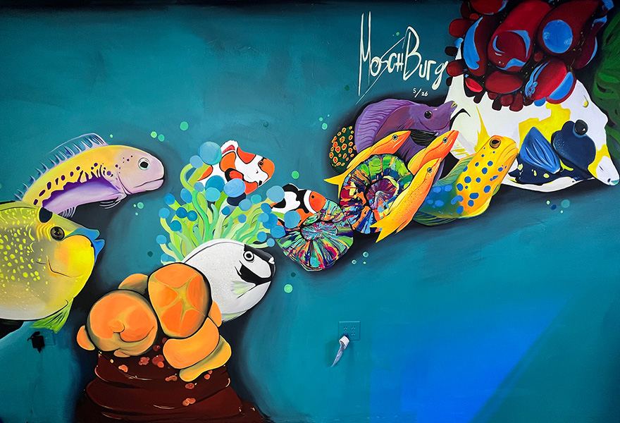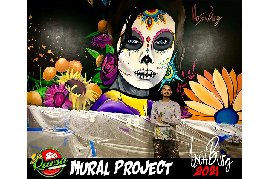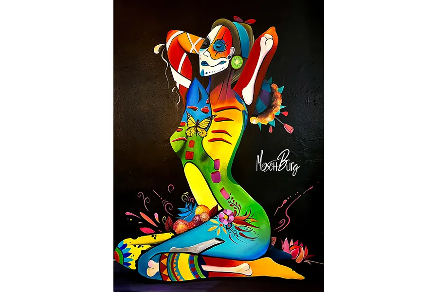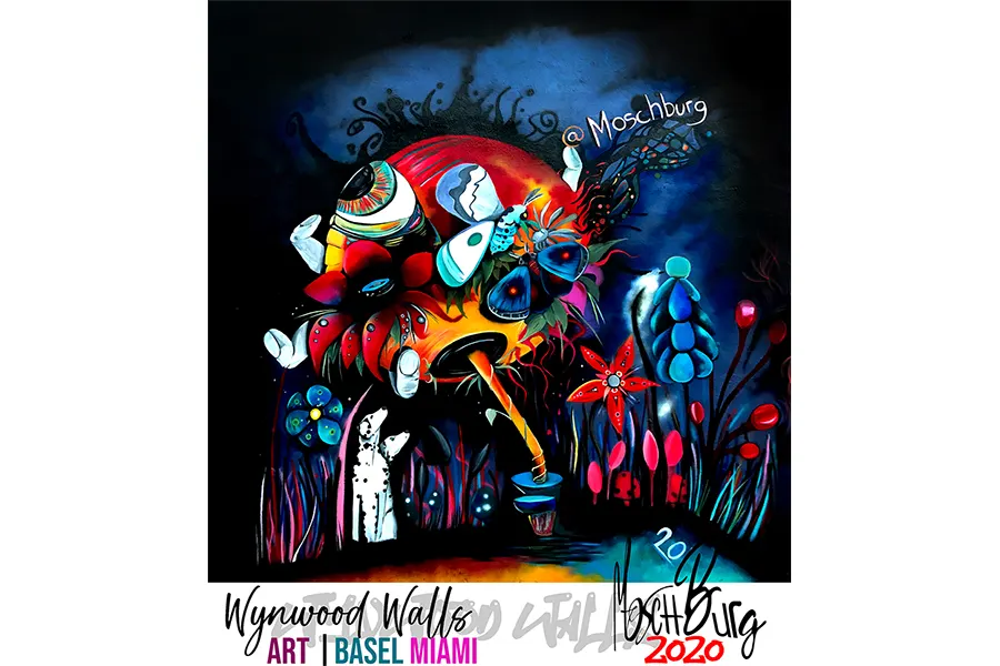 He hit rock bottom after he lost his job working as a Deli Manager when his store went bankrupt. Times got dark. Moschburg painted through these rough times with no promise of reward. When he believed he had no way of being able to pay his bills, Moschburg was offered a life-changing art project. He then began to work closely with an artist on a public mural project. This is where Moschburg incorporated his canvas-style paintings to create massive-sized murals. These murals came to change him as an artist. Creating images of deep emotional chaos. He always aspires to create a story as unique as his past. Venturing beyond the abstracts of the mind, each painting is unique with thick layers of untold stories adding to the overall aesthetics of the artwork. You will now find Moschburg tucked away in a studio crafting bizarre scenes of conjectural beauty.