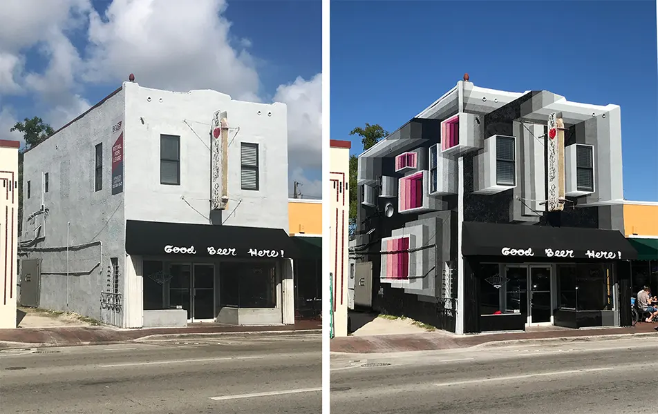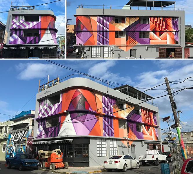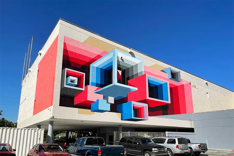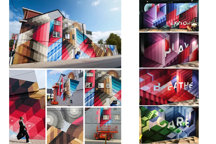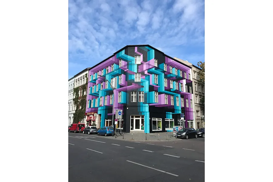 be found on walls, canvas, and a multitude of other surfaces. Passionately searching for the perfect form, he continues to make illusions by playing with lines, directions, and color shades.