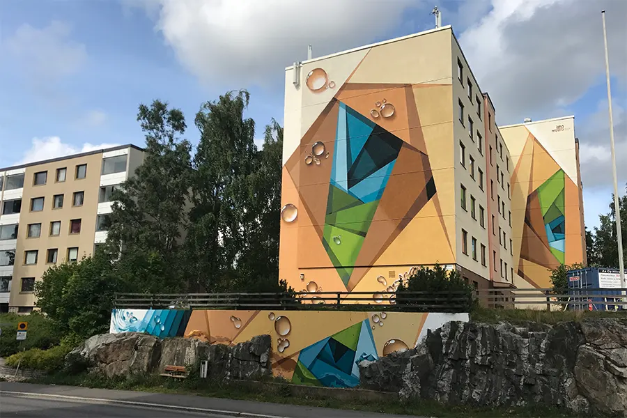 Harmonizing graffiti, graphic design, and abstract art. His shape-shifting pieces of art can be seen all over the world (Stockholm, Berlin, Helsinki, Paris, London, Bristol, Antwerp, Brussels, Amsterdam, Rotterdam, New York, Greensboro, Denver, Miami....)