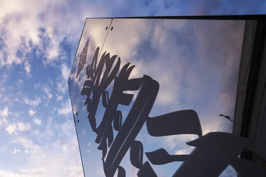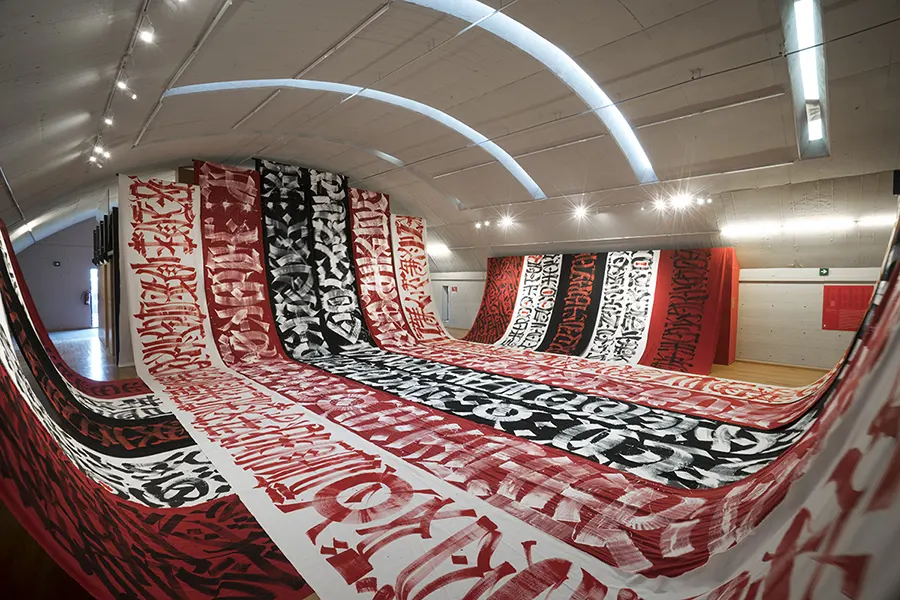 Dokins explores formally, symbolically and philosophically the potentiality of words and letters. In his work, they become gestures, traces that overlap creating patterns, textures, narratives; marks that carve sites, drawing boundaries, producing meaning. In that sense, for Dokins calligraphy and graffiti are a way to understand our relations with language, an action that stresses time, space and memory, a political enunciation. His artistic practice involves several disciplines and media such as calligraphy, graffiti, installation, performance and video art, among others.