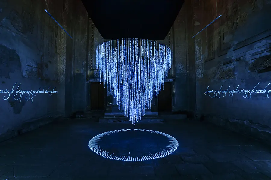 His concern about light that has lead him to experiment with various technologies and media, including Virtual Reality, through Tilt Brush a App he explored in the Google Cultural Institute in Paris. Another recent example is his project Heliographies of Memory (2014-2022), which examines the different levels in which inscriptions operate through light calligraphy actions performed in symbolically charged places, capturing the action of writing with long exposure photography: invisible inscriptions of light resignifying the space they cross.