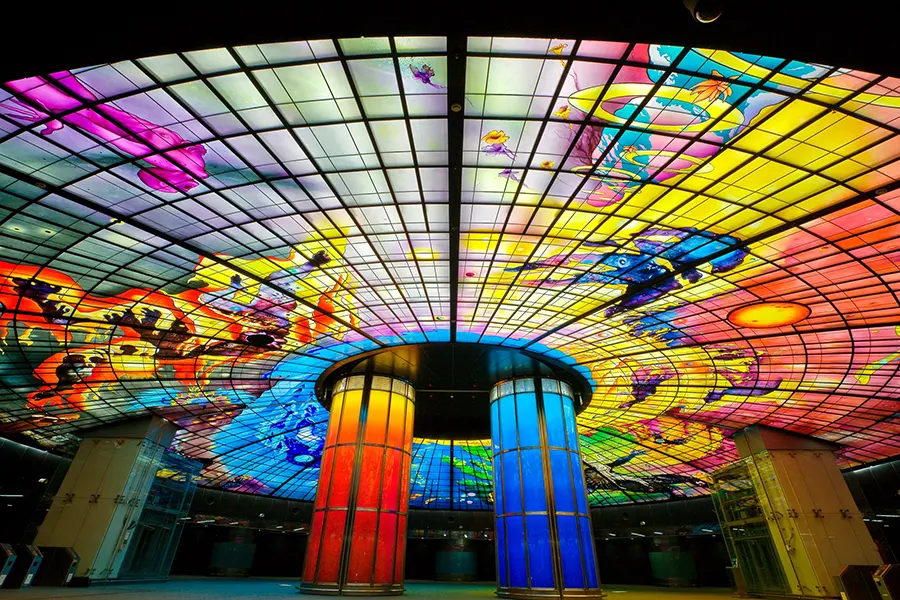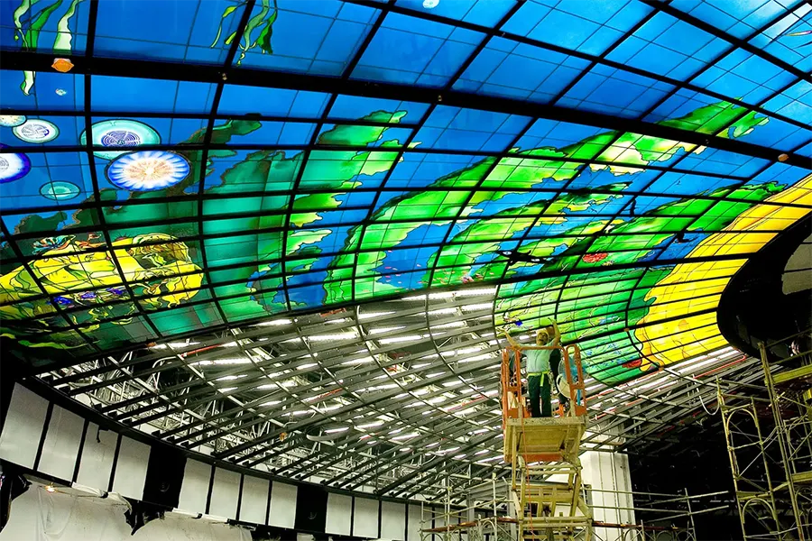 Most recently we have begun a collaboration with Narcissus Quagliata, one of the world’s masters in glass. His Dome of Light: Wind, Fire, and Time (R) is the largest illuminated work of Public Art in glass in the world. (https://wwwnarcissusquagliata.com.)