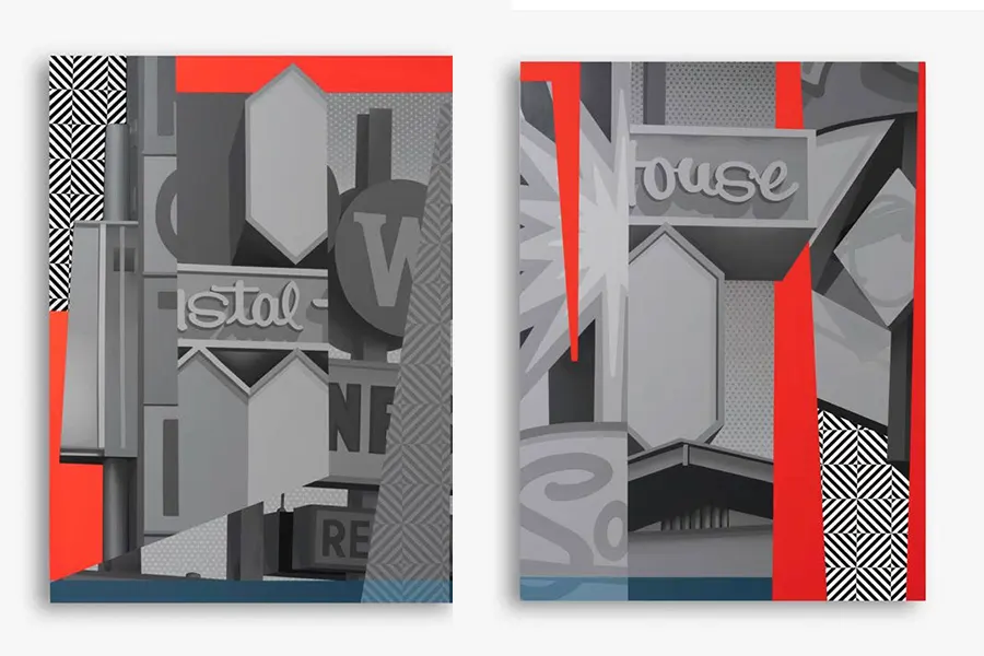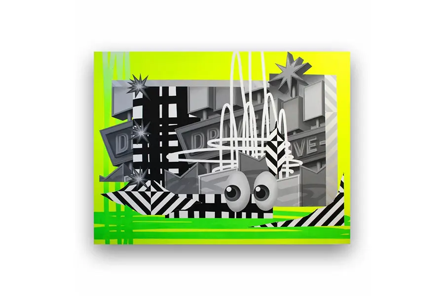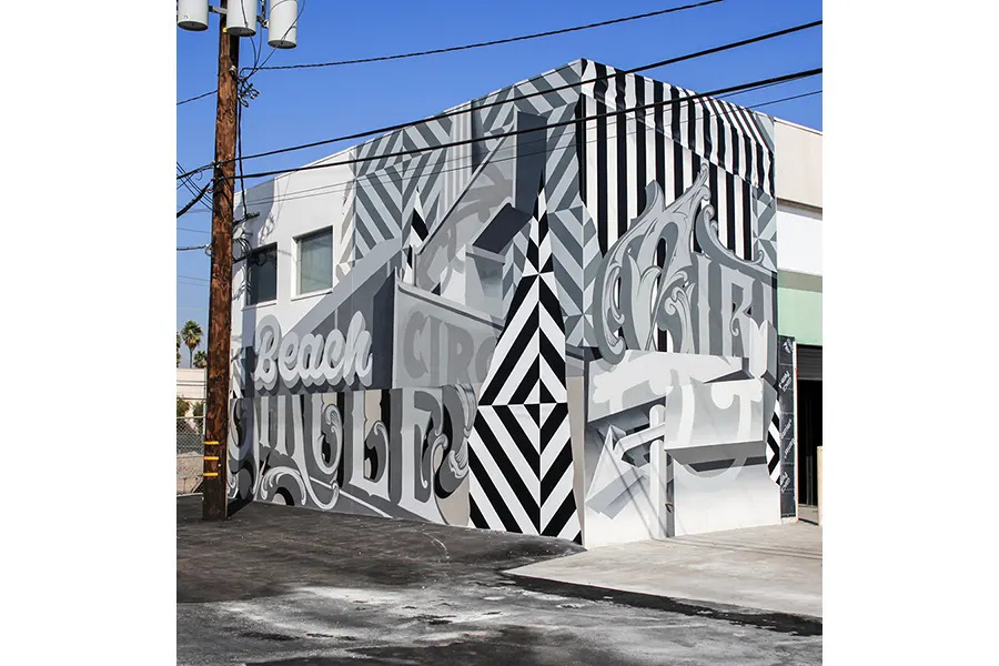 TRAV’s work explores technology's role in the disruption of the physical world, weaving monuments from the built environment with striking patterns and icons from the Internet era. Through techniques learned from graffiti, the formal language of commercial sign painting, and newer technologies like 3D printing, TRAV reframes our memories of the golden era of retail, both real and imagined, in sharp juxtaposition with our dependence on the technologies that have replaced it. The California native discovered his love for creating art through graffiti starting in 1996, painting on walls and trains up and down the west coast.