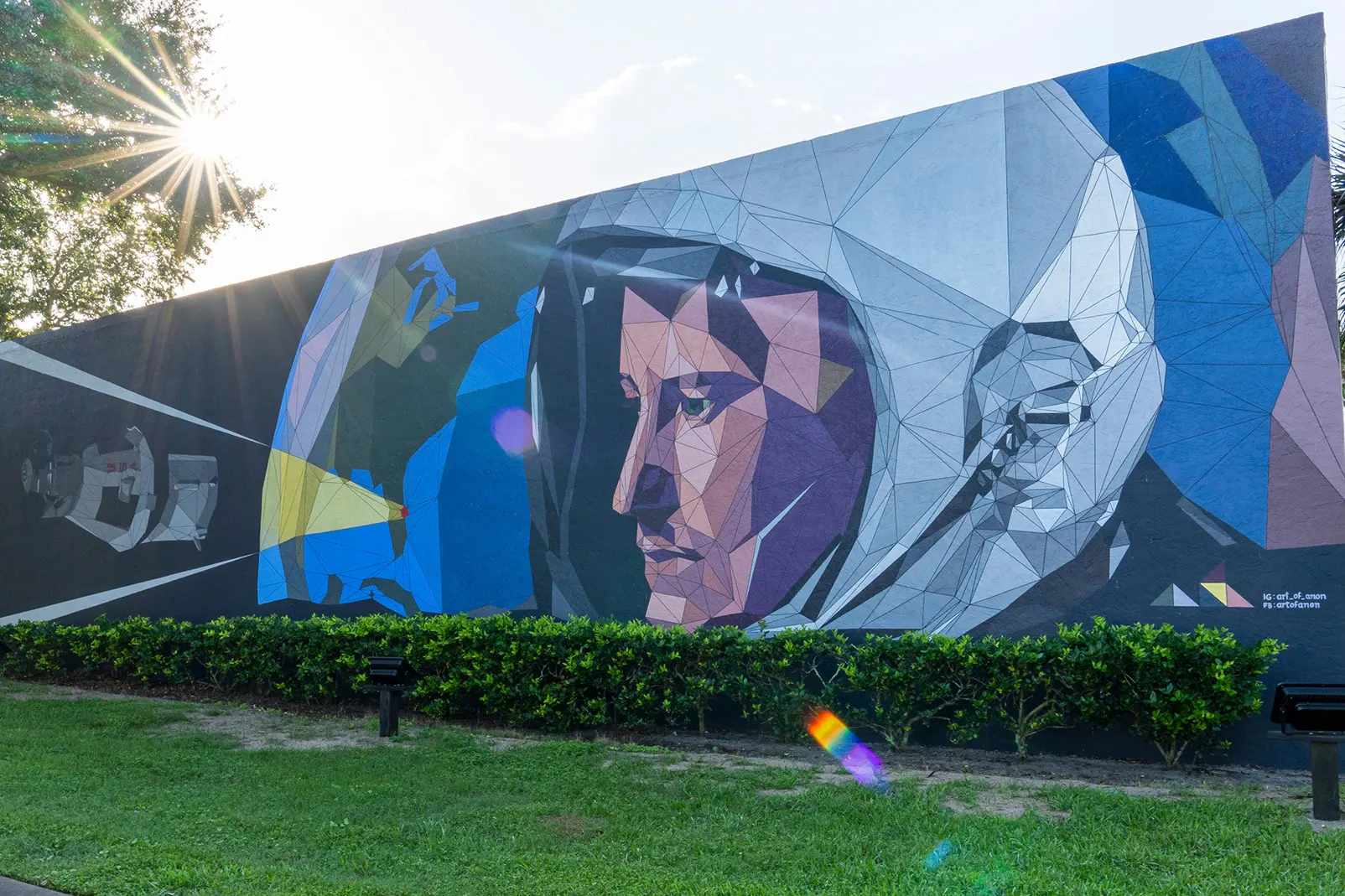 Anón is a South Florida-based husband and wife artist team who make geometric murals and studio arts. With a focus on portraiture and flora/fauna, they primary use the rigid shapes of triangles to make highly organic, large-scale compositions that rely on shape and vibrant colors to create three-dimensional experiences. Their work is an exploration into the subject of interconnection, and rudimentarily mimics the function of triangles as the most fundamental fabric of reality. With often thousands of triangles to tell the story, it becomes apparent to see how each piece, regardless of color and size, is an integral part of the whole.